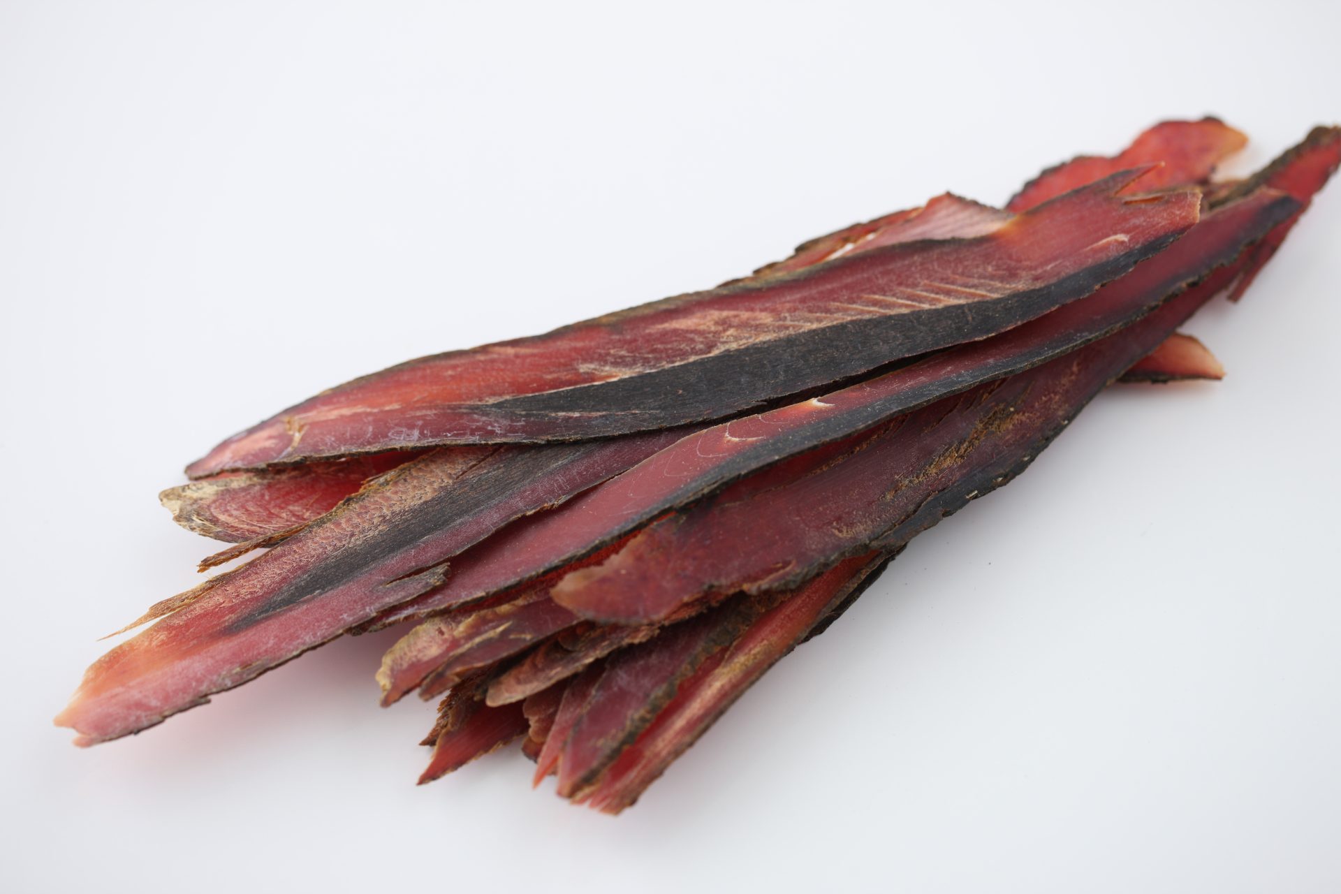 鰹節を厚く削りました。従来の使い方では出汁取り専用で使う事が多いですが、ジャーキーの様に食べる事が出来ます。かなり分厚いので、ある程度噛む力が強い犬向けの製品となります。