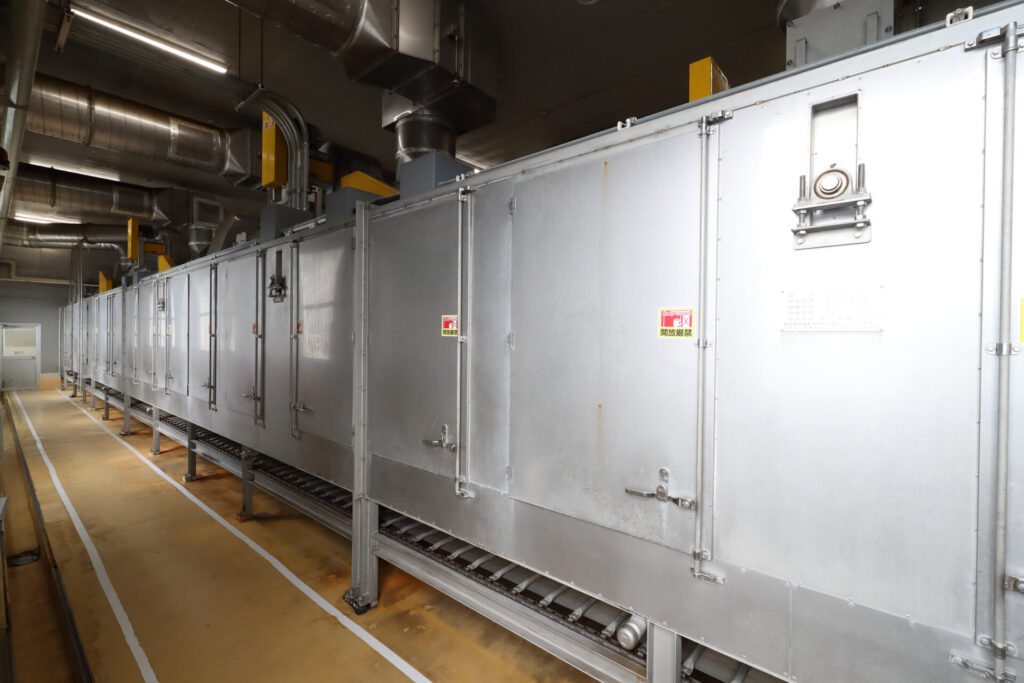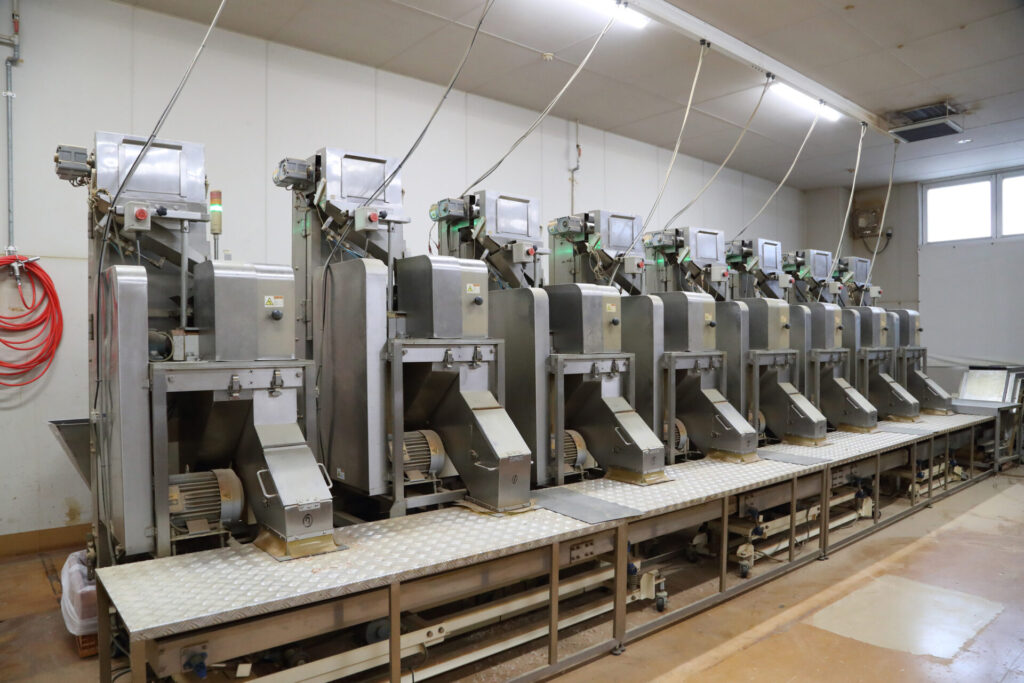 The bonito flakes production line has four rooms for thin shavings (general shavings) and one room for thick shavings (shavings specifically for making dashi). With a total of five production lines, we are able to flexibly respond to production requests.