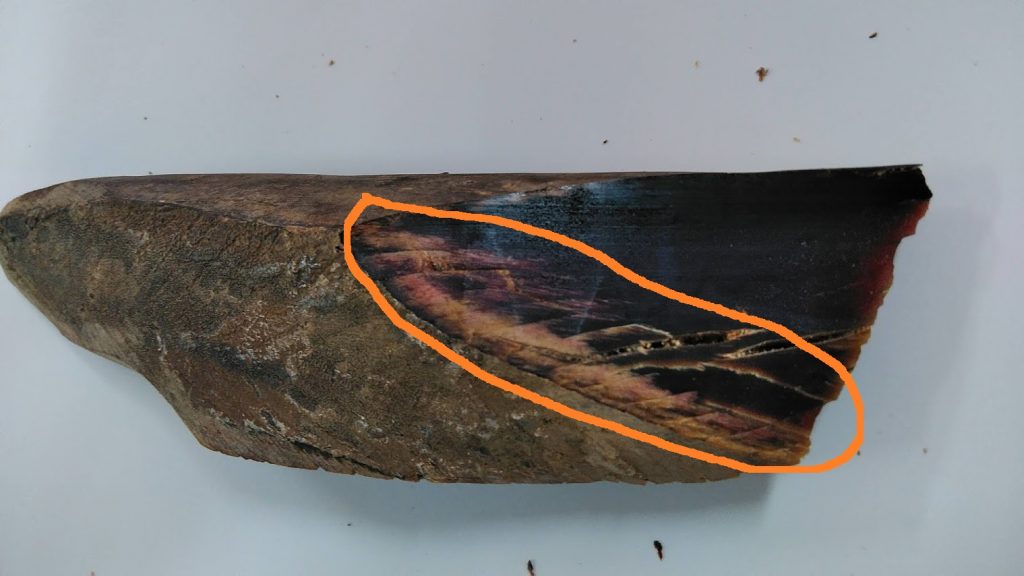 割った二本を見比べると、少しだけ背節のほうが大きいかなという程度です。