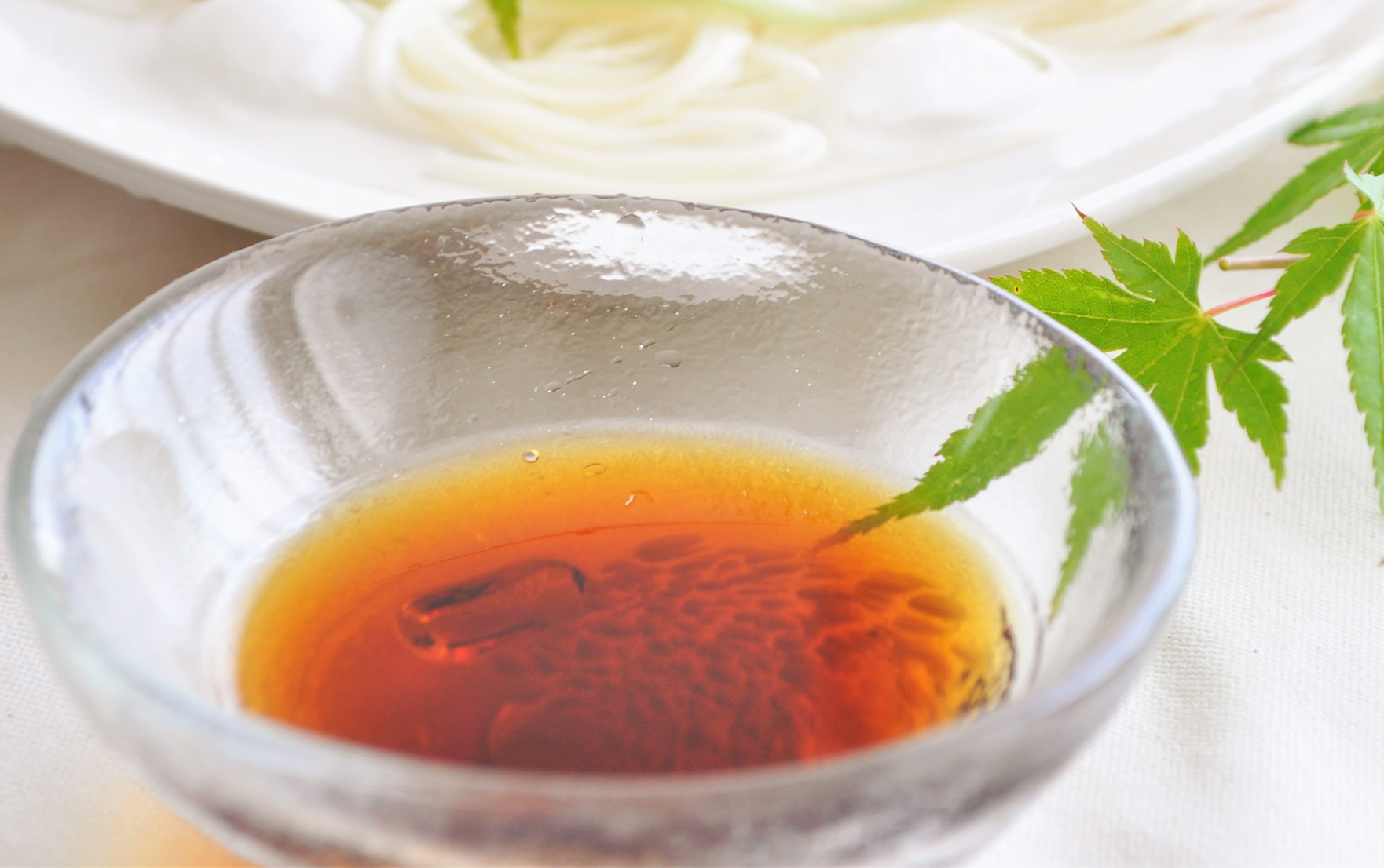 3倍濃縮の場合は、つゆ:水=1:2で希釈するとストレートと同じ濃さです。