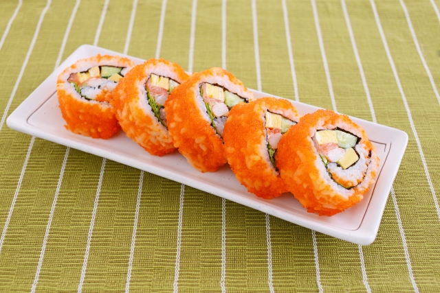 また、生の魚は使われておらず、アボカドやカニカマなどを具材にした、食べやすいアメリカ風のお寿司です。